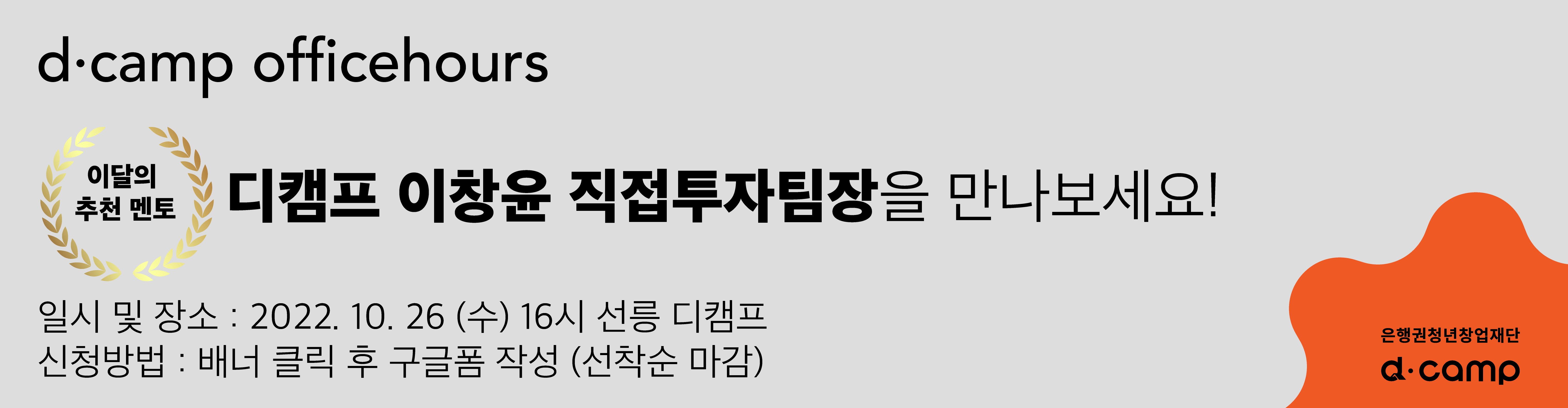 [10/26(수)│선릉] d·camp officehours with 디캠프 이창윤 직접투자팀장