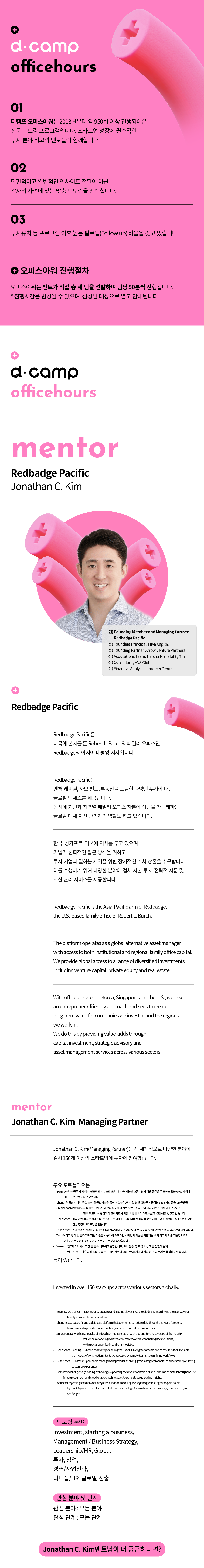 [4/24│온라인] d·camp officehours with Redbadge Pacific Jonathan C. Kim Managing Partner